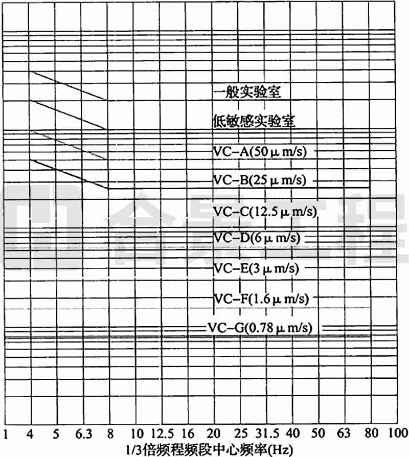 A.0.1 拉絲塔的容許振動參數可按精密設備、儀器容許振動通用標準曲線(圖A.0.1)中VC-B(25μm/s)曲線確定。